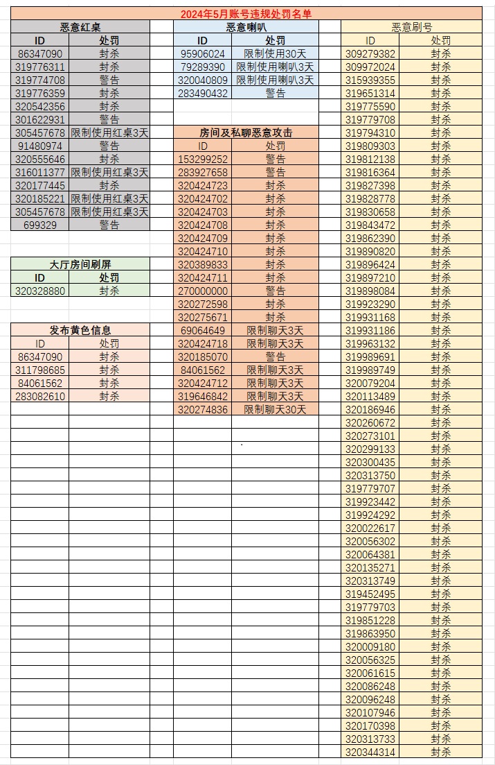 账号违规处罚公告(2024年5月)