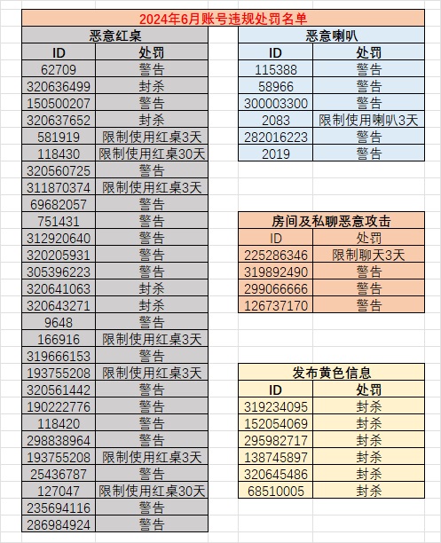账号违规处罚公告(2024年6月)