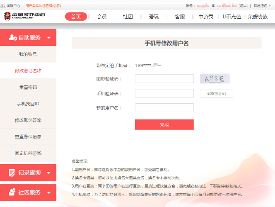一、手机号修改用户名(适用设置了安全手机的用户)