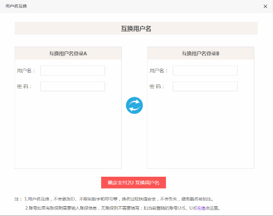 5、点击“确定支付2U互换用户名”按钮完成用户名互换